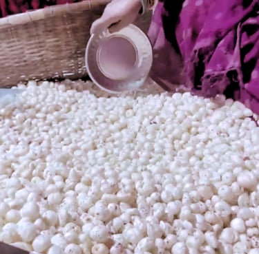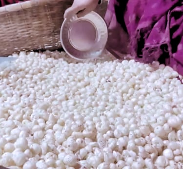 Our makhana is hand picked to retain its natural shape, purity, and freshness. This meticulous method ensures that only clean, well-puffed seeds make it through, free from impurities. It is a slow, thoughtful process that honors generations of Mithila craftsmanship.